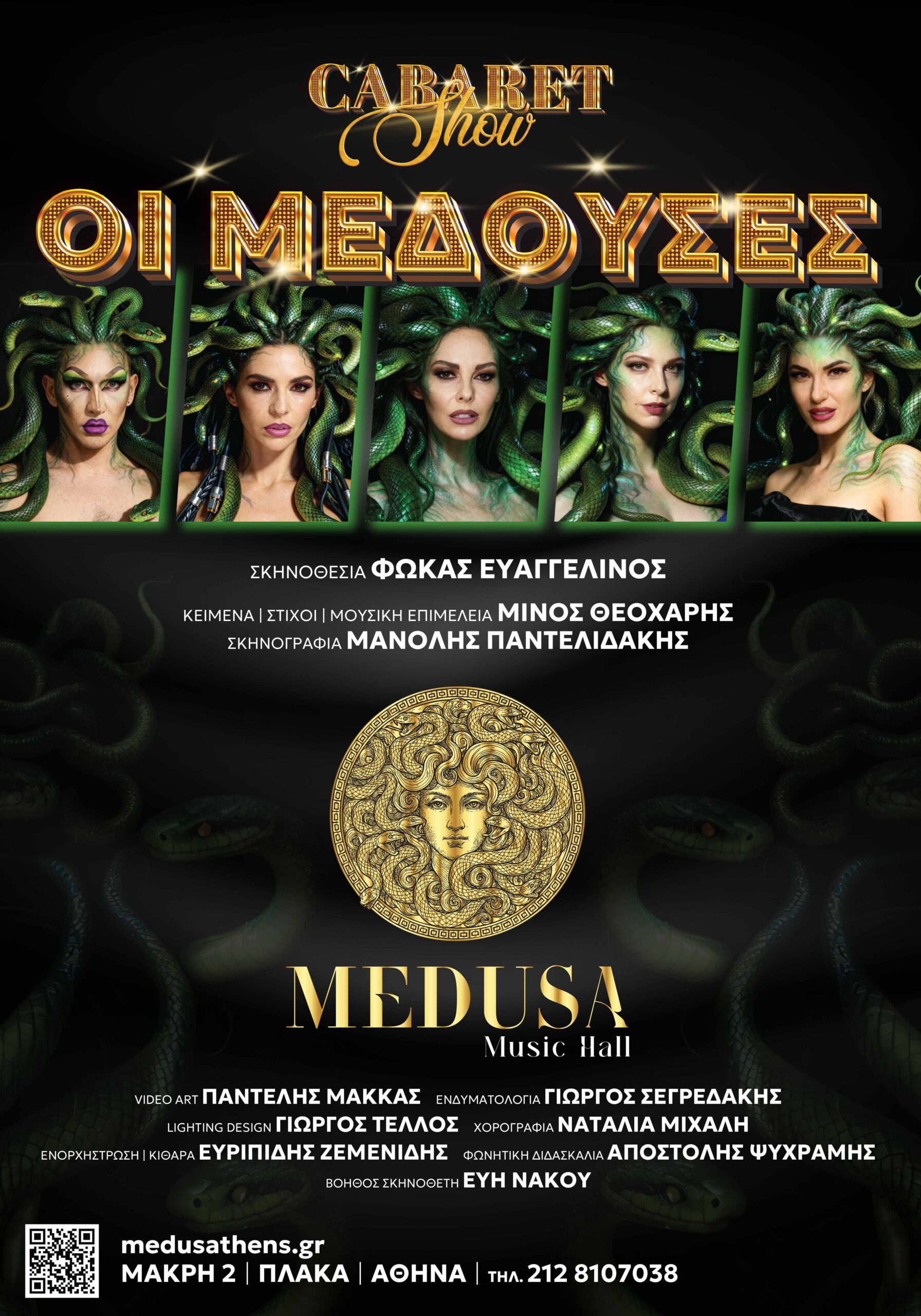 Κάθε Παρασκευή και Σάββατο ο Φωκάς Ευαγγελινός σκηνοθετεί και παρουσιάζει το Cabaret Show “Μέδουσες”, με τις Μπέττυ Μαγγίρα, Νικολέττα Καρρά, Σοφία Κουρτίδου, Κάτια Σαμαντζή, Νίνα Νάη.